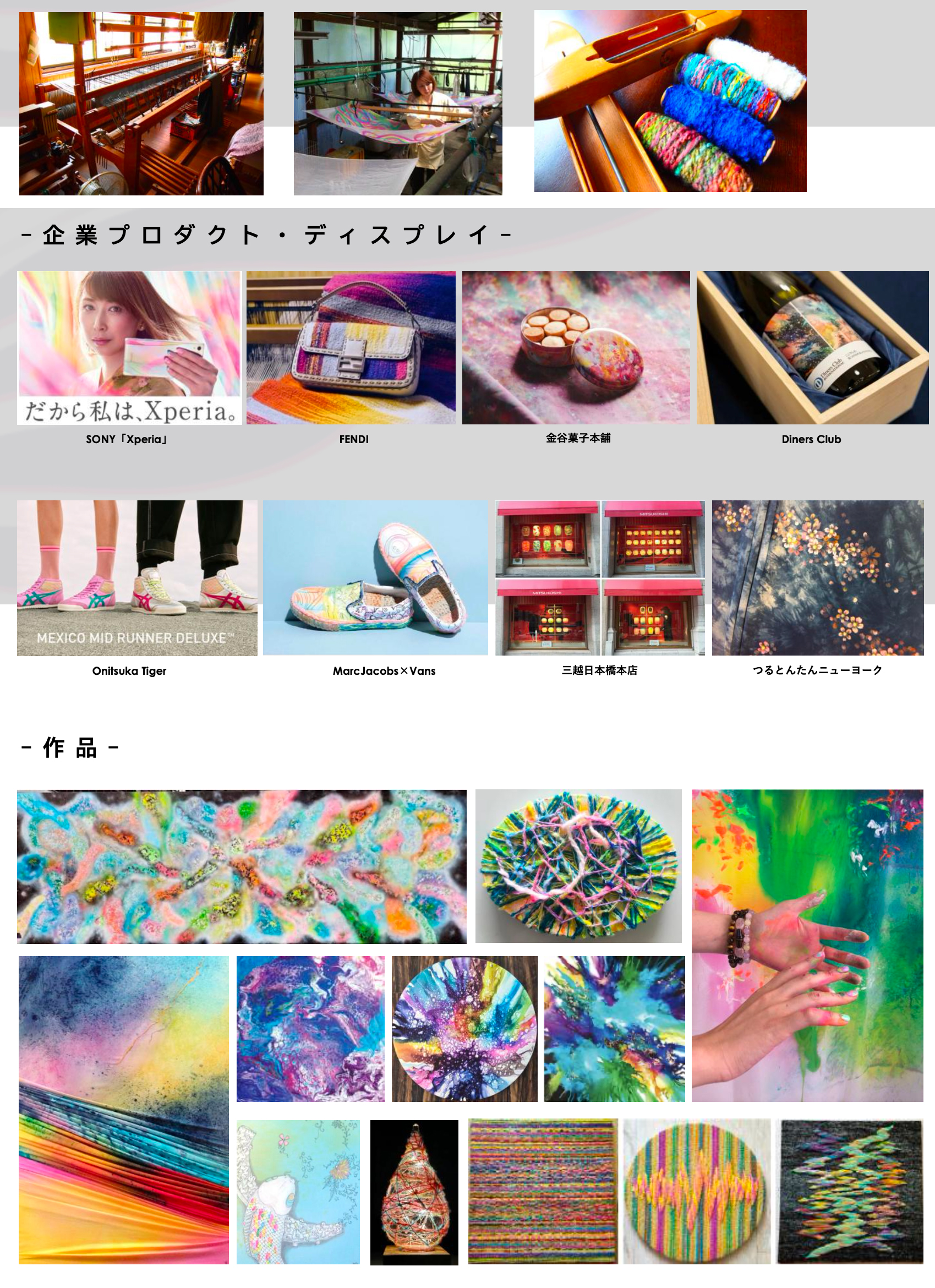 伝統技法と現代的な感性を融合した色彩豊かな染織アートで、自らの作品制作を行うかたわら、
